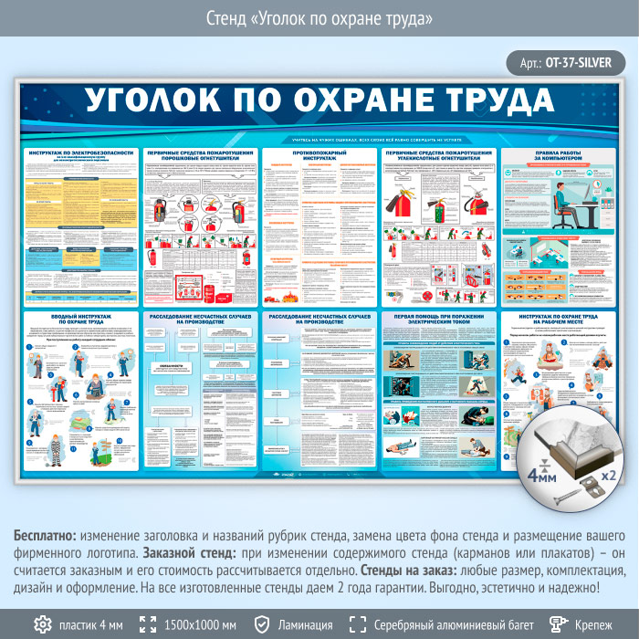 Стенд «Уголок по охране труда» (OT-37-SILVER) в Улан-Удэ купить