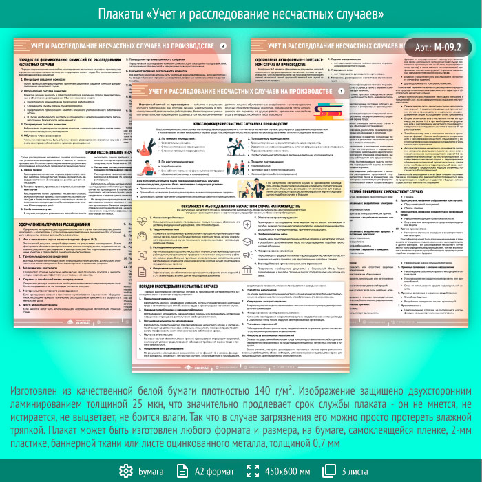 Плакаты «Учет и расследование несчастных случаев» (М-09.2, ламинированная бумага, А2, 3 листа) в Улан-Удэ купить