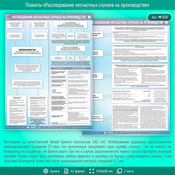 Плакаты «Расследование несчастных случаев на производстве» (М-123, ламинированная бумага, А2, 2 листа) в Улан-Удэ купить