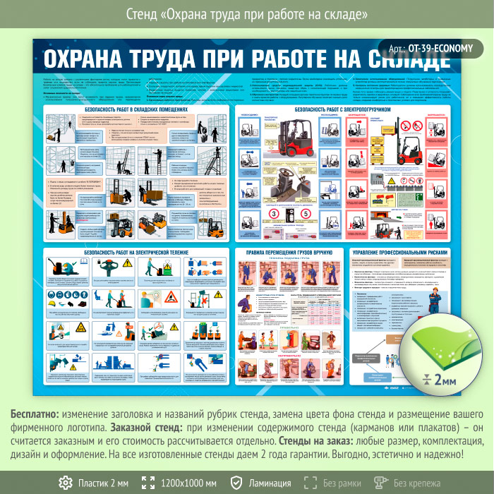 Стенд «Охрана труда при работе на складе» (OT-39-ECONOMY) в Улан-Удэ купить