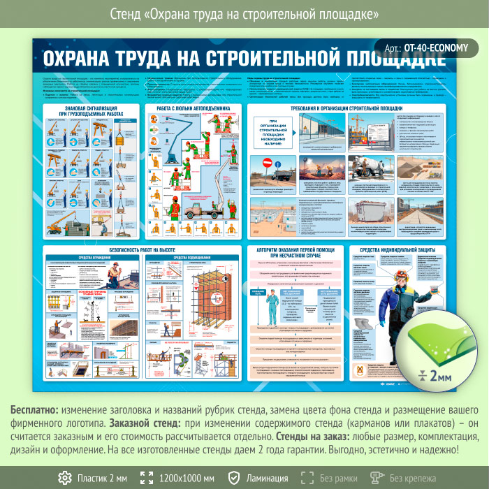 Стенд «Охрана труда на строительной площадке» (OT-40-ECONOMY) в Улан-Удэ купить