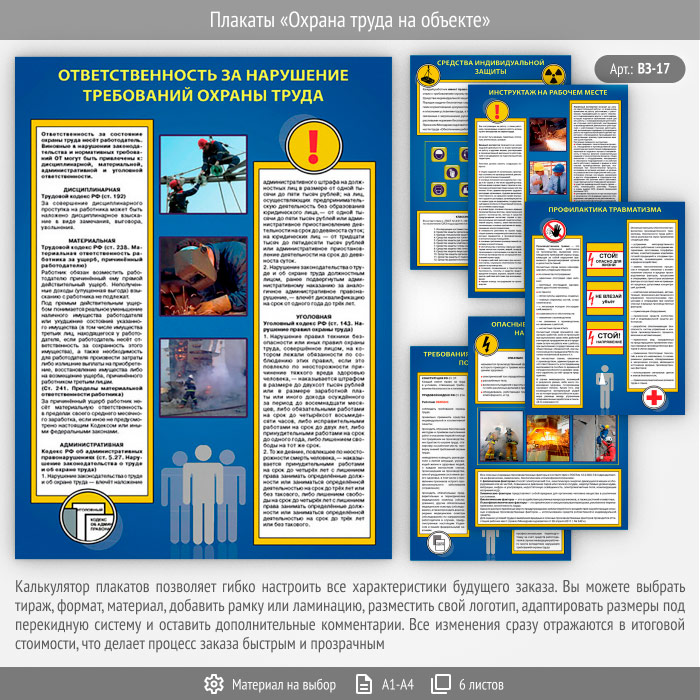 Плакаты «Охрана труда на объекте» (ВЗ-17, 6 листов) в Улан-Удэ купить