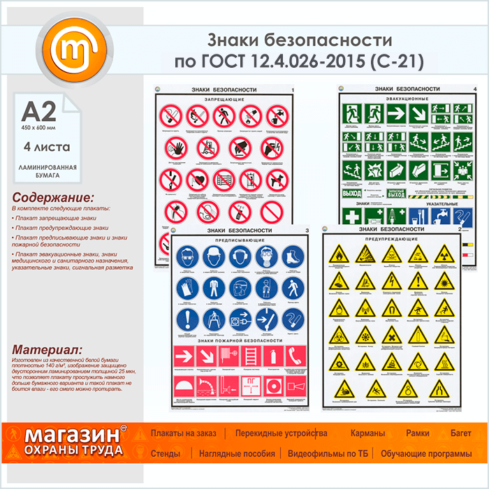 Плакаты «Знаки безопасности по ГОСТ 12.4.026-2015» (С-21, ламинированная бумага, А2, 4 листа) в Улан-Удэ купить
