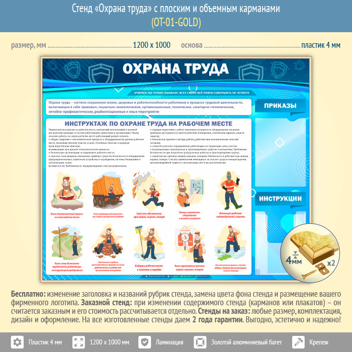 Стенд «Охрана труда» с плоским и объемным карманами (OT-01-GOLD) в Улан-Удэ купить
