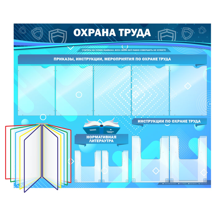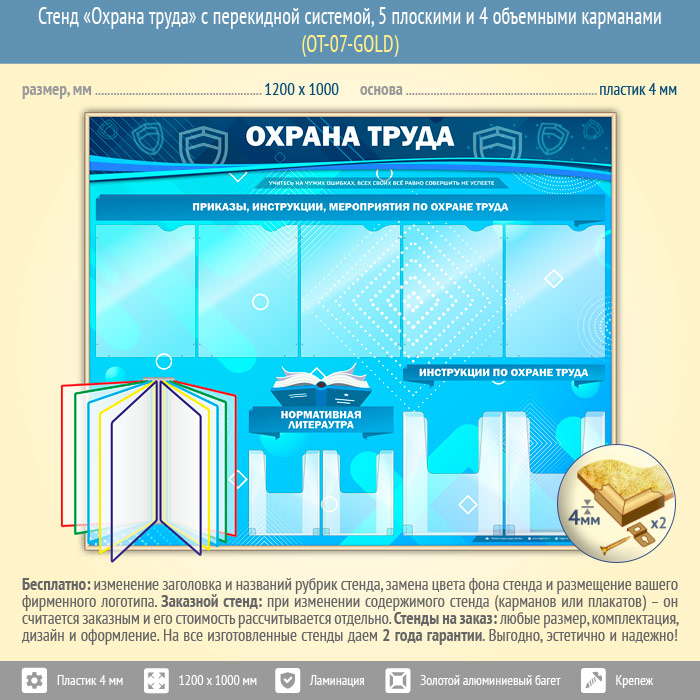 Стенд «Охрана труда» с перекидной системой, 5 плоскими и 4 объемными карманами (OT-07-GOLD) в Улан-Удэ купить