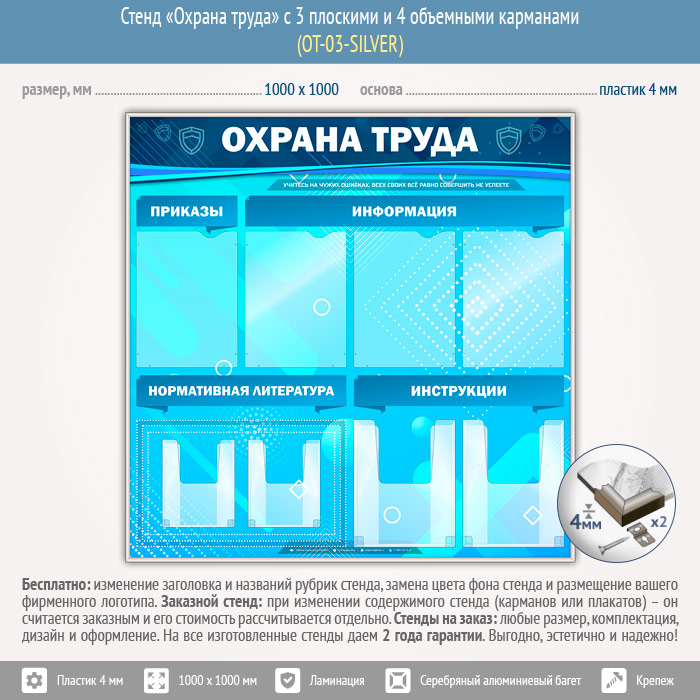 Стенд «Охрана труда» с 4 плоскими и 4 объемными карманами (OT-03-SILVER) в Улан-Удэ купить