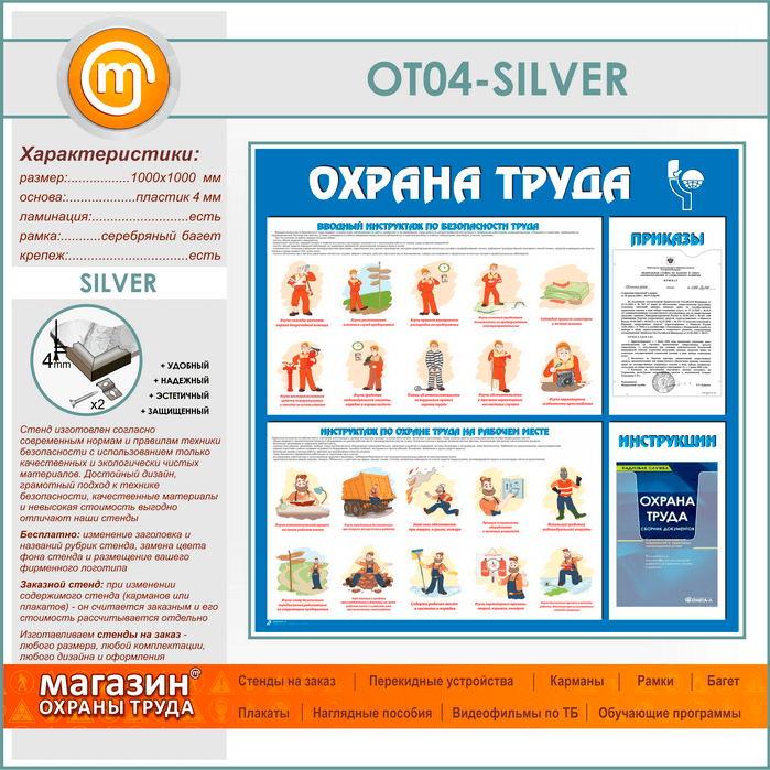 Стенд «Охрана труда» с плоским и объемным карманами (OT-04-SILVER) в Улан-Удэ купить