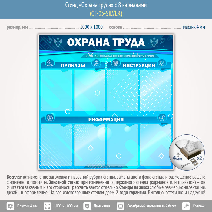 Стенд «Охрана труда» с 8 карманами (OT-05-SILVER) в Улан-Удэ купить