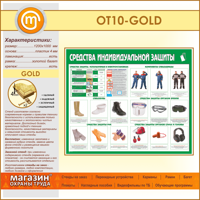 Стенд «Средства индивидуальной защиты» (OT-10-GOLD) в Улан-Удэ купить