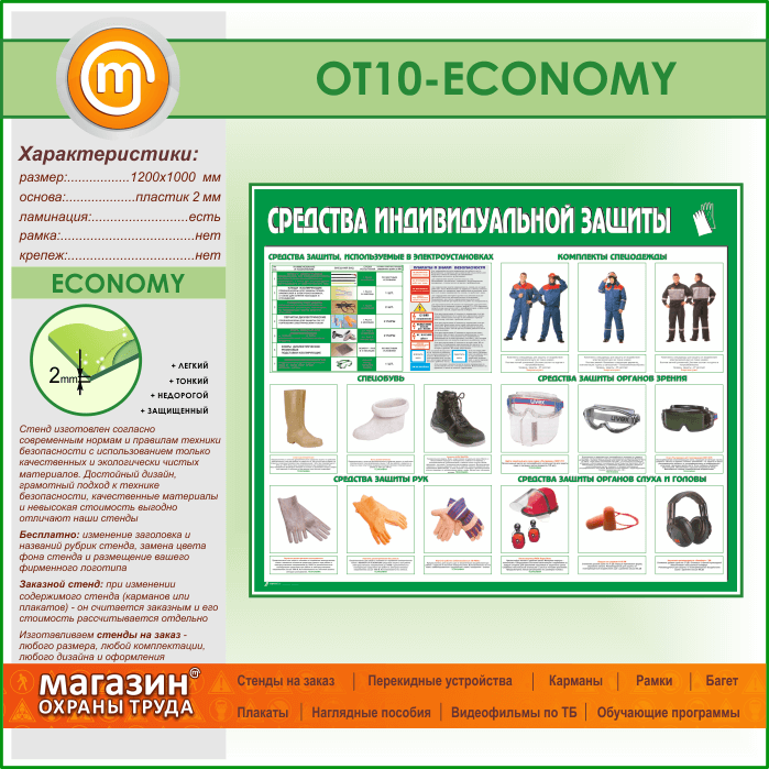 Стенд «Средства индивидуальной защиты» (OT-10-ECONOMY) в Улан-Удэ купить