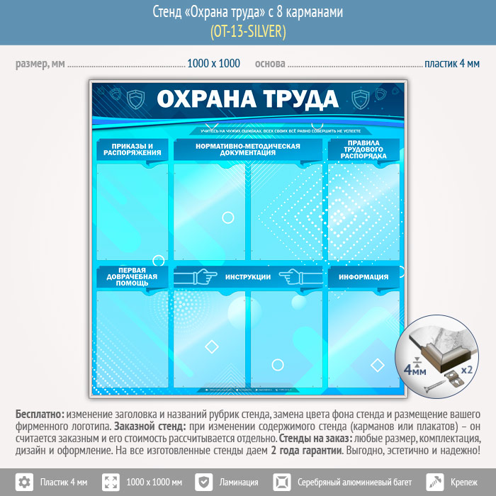 Стенд «Охрана труда» с 8 карманами (OT-13-SILVER) в Улан-Удэ купить