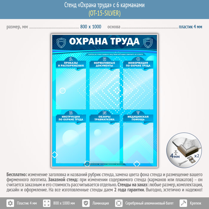 Стенд «Охрана труда» с 6 карманами (OT-15-SILVER) в Улан-Удэ купить