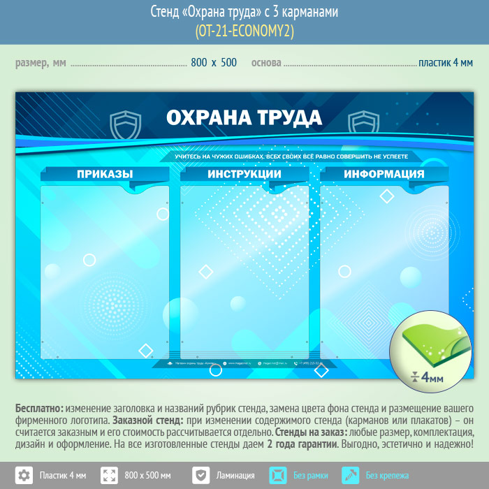Стенд «Охрана труда» с 3 карманами (OT-21-ECONOMY2) в Улан-Удэ купить