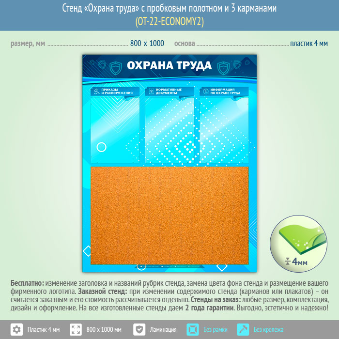 Стенд «Охрана труда» с пробковым полотном и 3 карманами (OT-22-ECONOMY2) в Улан-Удэ купить