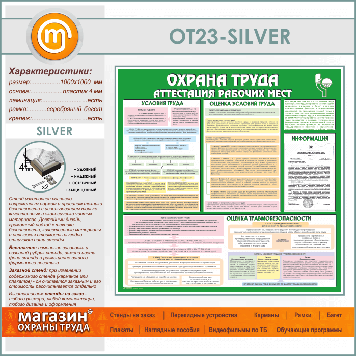 Стенд «Охрана труда. Аттестация рабочих мест» с карманом (OT-23-SILVER) в Улан-Удэ купить