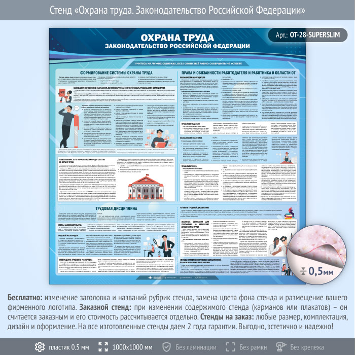 Стенд «Охрана труда. Законодательство Российской Федерации» (OT-28-SUPERSLIM) в Улан-Удэ купить