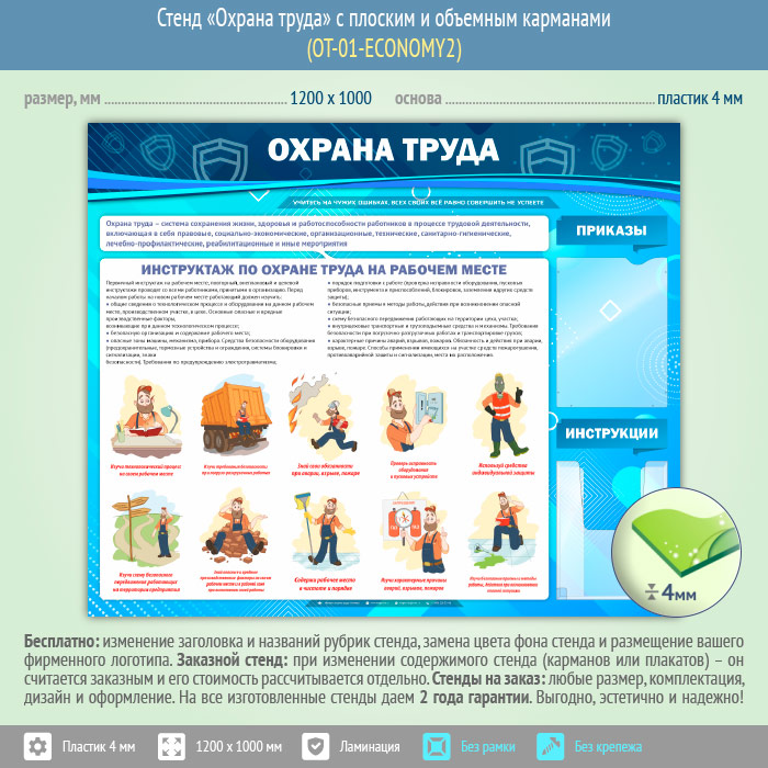Стенд «Охрана труда» с плоским и объемным карманами (OT-01-ECONOMY2) в Улан-Удэ купить