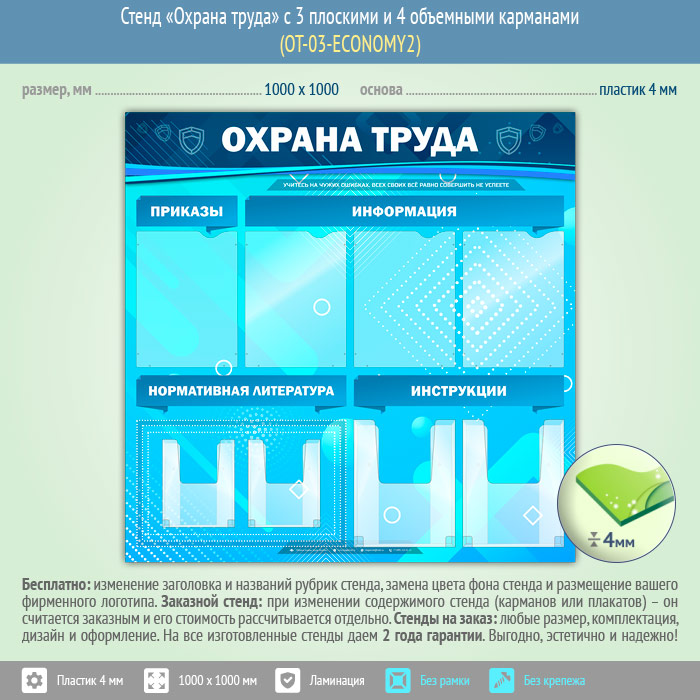 Стенд «Охрана труда» с 4 плоскими и 4 объемными карманами (OT-03-ECONOMY2) в Улан-Удэ купить