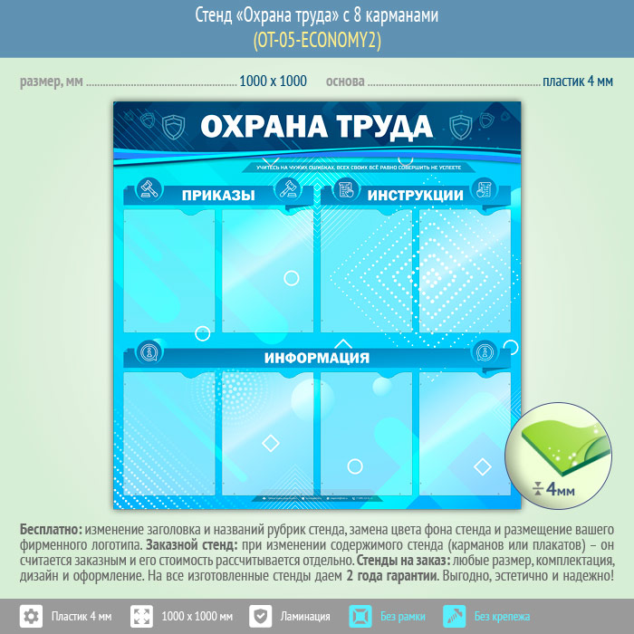 Стенд «Охрана труда» с 8 карманами (OT-05-ECONOMY2) в Улан-Удэ купить