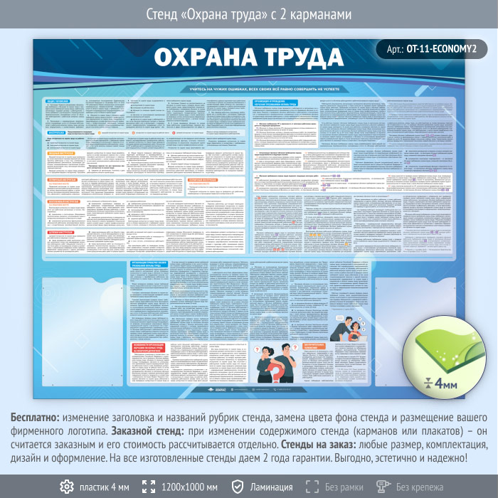 Стенд «Охрана труда» с 2 карманами (OT-11-ECONOMY2) в Улан-Удэ купить