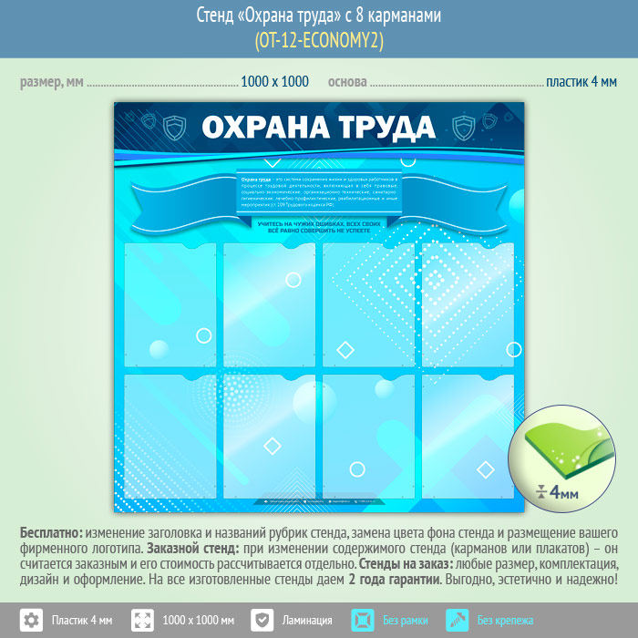 Стенд «Охрана труда» с 8 карманами (OT-12-ECONOMY2) в Улан-Удэ купить