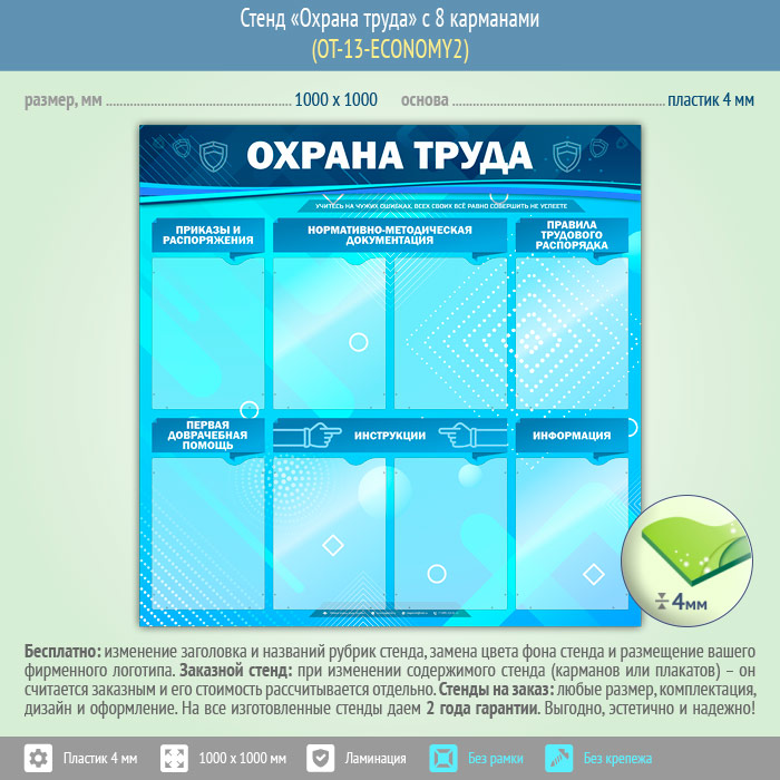 Стенд «Охрана труда» с 8 карманами (OT-13-ECONOMY2) в Улан-Удэ купить