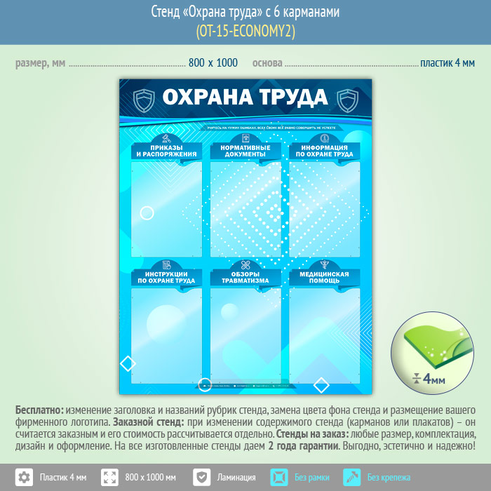 Стенд «Охрана труда» с 6 карманами (OT-15-ECONOMY2) в Улан-Удэ купить
