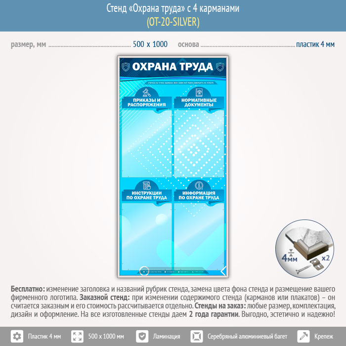 Стенд «Охрана труда» с 4 карманами (OT-20-SILVER) в Улан-Удэ купить