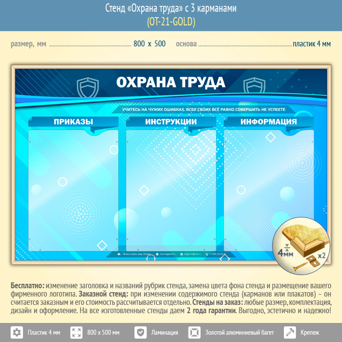 Стенд «Охрана труда» с 3 карманами (OT-21-GOLD) в Улан-Удэ купить