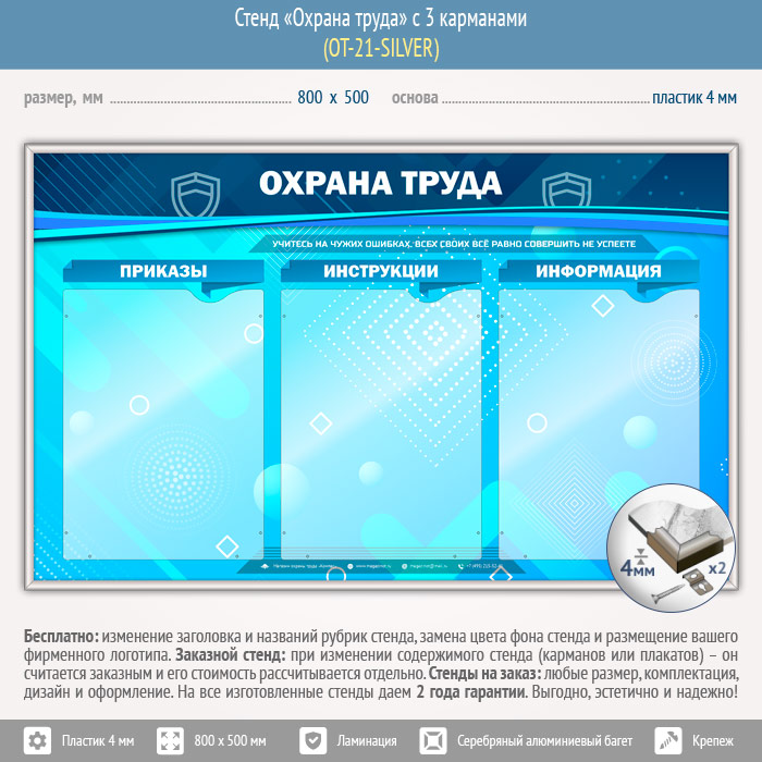 Стенд «Охрана труда» с 3 карманами (OT-21-SILVER) в Улан-Удэ купить