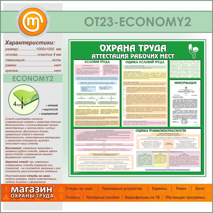 Стенд «Охрана труда. Аттестация рабочих мест» с карманом (OT-23-ECONOMY2) в Улан-Удэ купить