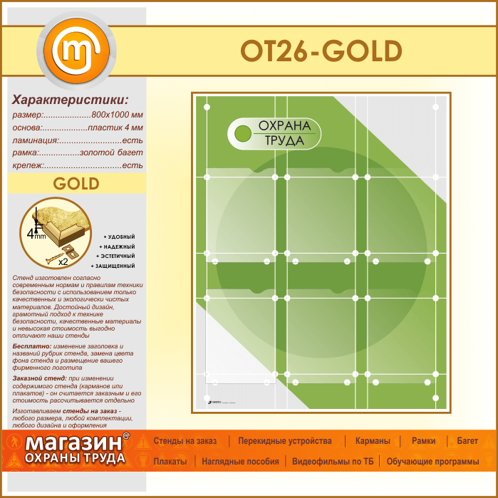 Стенд «Охрана труда» с 6 плоскими карманами (OT-26-GOLD) в Улан-Удэ купить