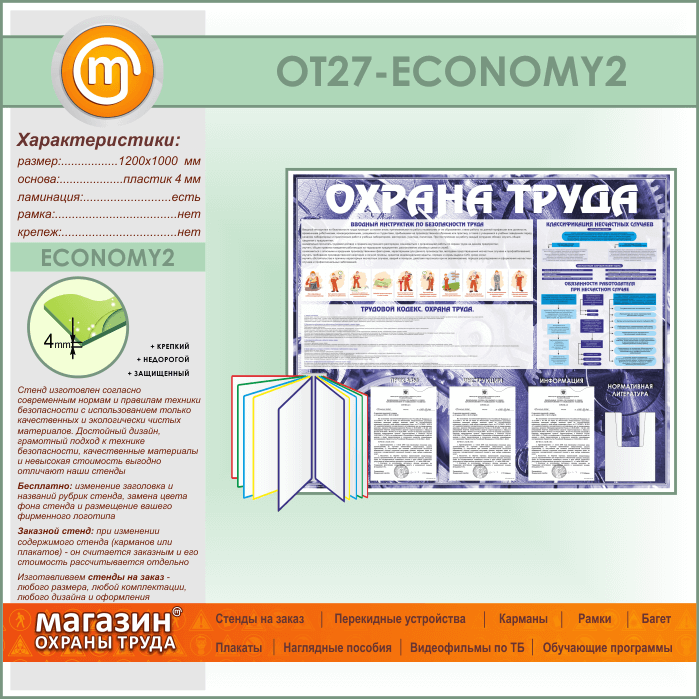 Стенд «Охрана труда» с перекидной системой, 3 плоскими и 1 объемным карманом (OT-27-ECONOMY2) в Улан-Удэ купить