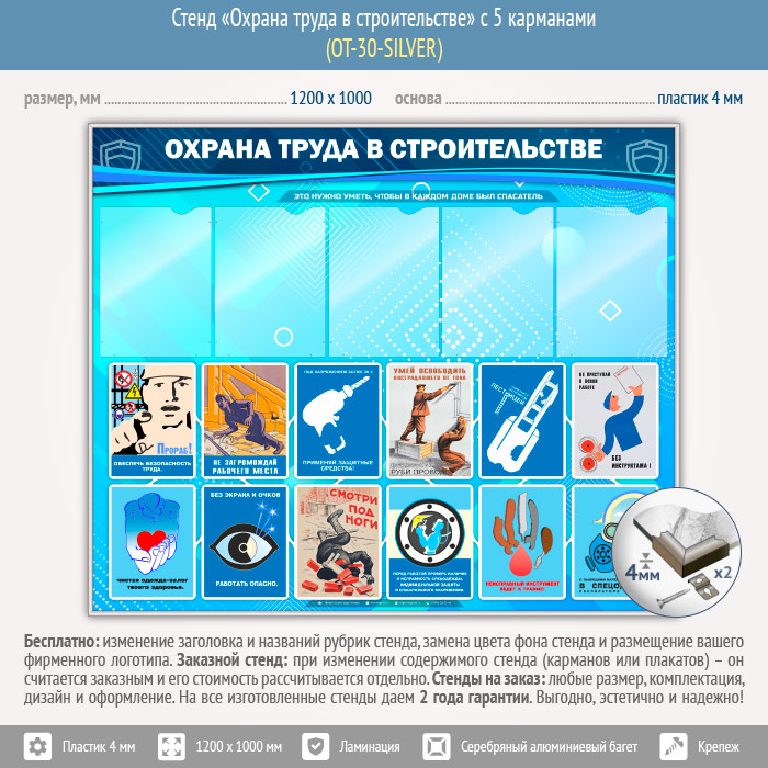 Стенд «Охрана труда в строительстве» с 5 карманами (OT-30-SILVER) в Улан-Удэ купить