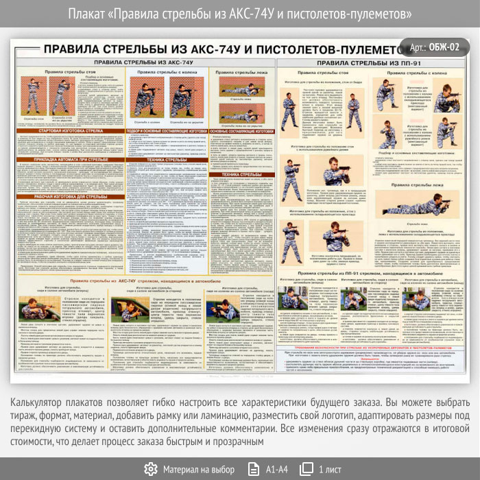 Плакат «Правила стрельбы из АКС-74У и пистолетов-пулеметов» (ОБЖ-02, 1 лист) в Улан-Удэ купить