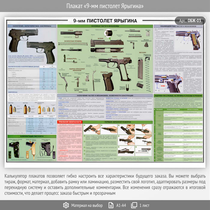 Плакат «9-мм пистолет Ярыгина» (ОБЖ-03, 1 лист) в Улан-Удэ купить