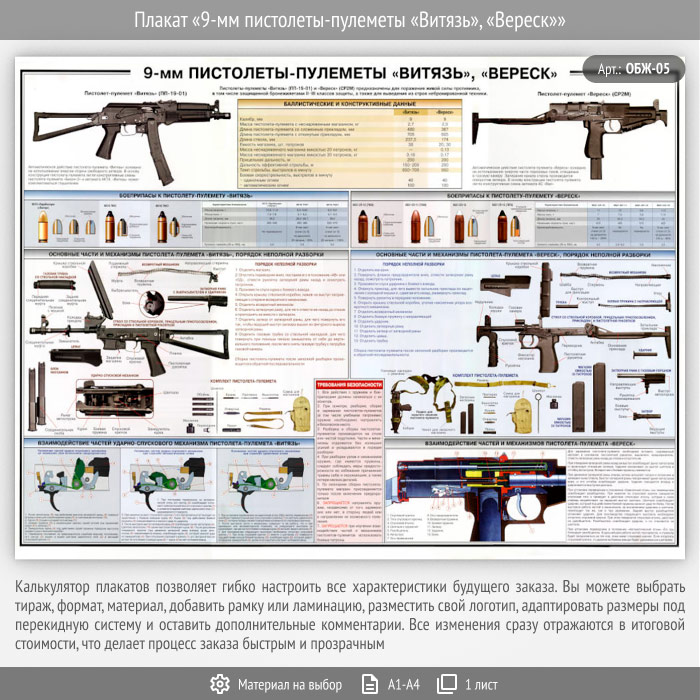 Плакат «9-мм пистолеты-пулеметы «Витязь», «Вереск»» (ОБЖ-05, 1 лист) в Улан-Удэ купить
