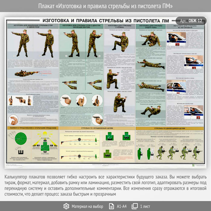 Плакат «Изготовка и правила стрельбы из пистолета ПМ» (ОБЖ-12, 1 лист) в Улан-Удэ купить