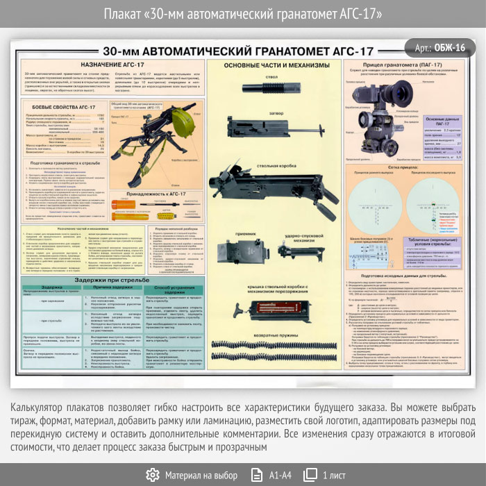 Плакат «30-мм автоматический гранатомет АГС-17» (ОБЖ-16, 1 лист) в Улан-Удэ купить