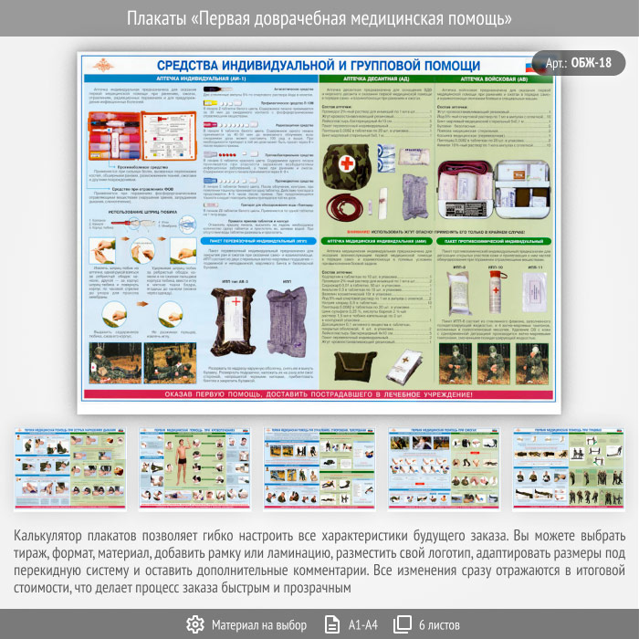Плакаты «Первая доврачебная медицинская помощь» (ОБЖ-18, 6 листа) в Улан-Удэ купить