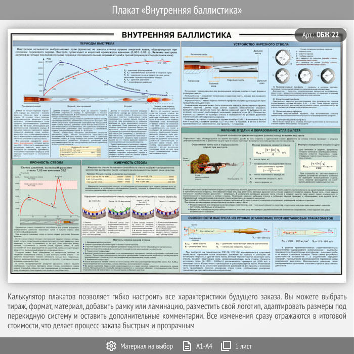 Плакат «Внутренняя баллистика» (ОБЖ-22, 1 лист) в Улан-Удэ купить