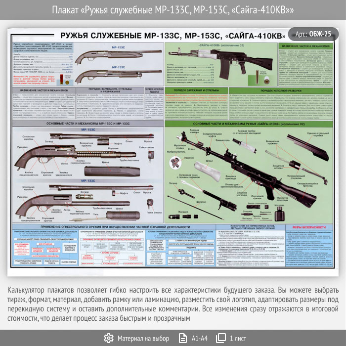 Плакат «Ружья служебные МР-133С, МР-153С, «Сайга-410КВ»» (ОБЖ-25, 1 лист) в Улан-Удэ купить