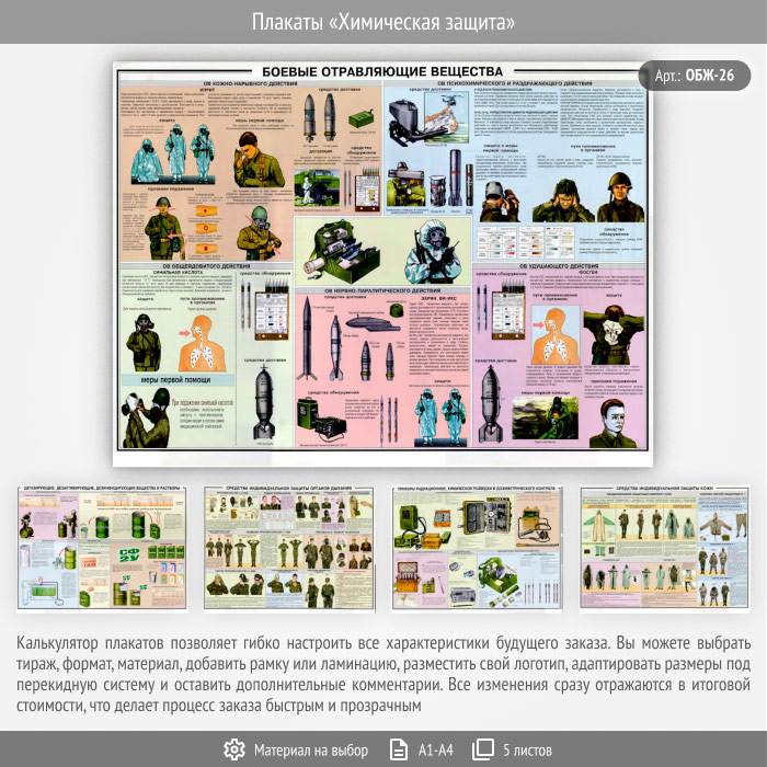 Плакаты «Химическая защита» (ОБЖ-26, 5 листа) в Улан-Удэ купить