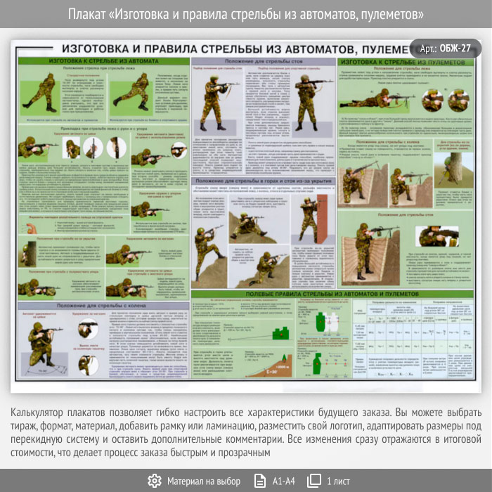 Плакат «Изготовка и правила стрельбы из автоматов, пулеметов» (ОБЖ-27, 1 лист) в Улан-Удэ купить