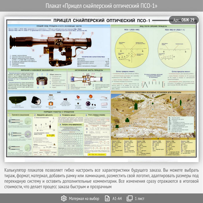 Плакат «Прицел снайперский оптический ПСО-1» (ОБЖ-29, 1 лист) в Улан-Удэ купить