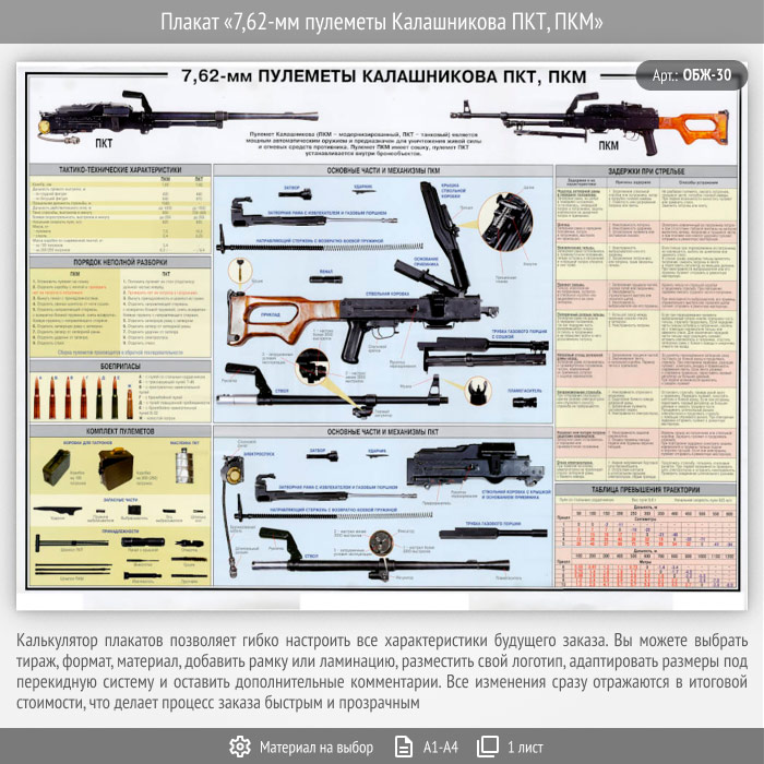 Плакат «7,62-мм пулеметы Калашникова ПКТ, ПКМ» (ОБЖ-30, 1 лист) в Улан-Удэ купить