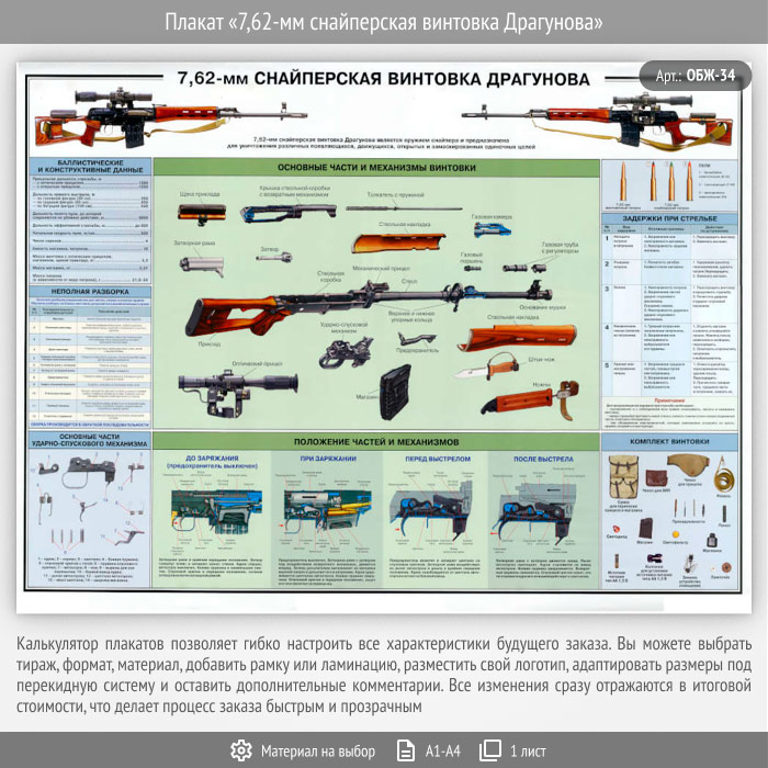 Плакат «7,62-мм снайперская винтовка Драгунова» (ОБЖ-34, 1 лист) в Улан-Удэ купить