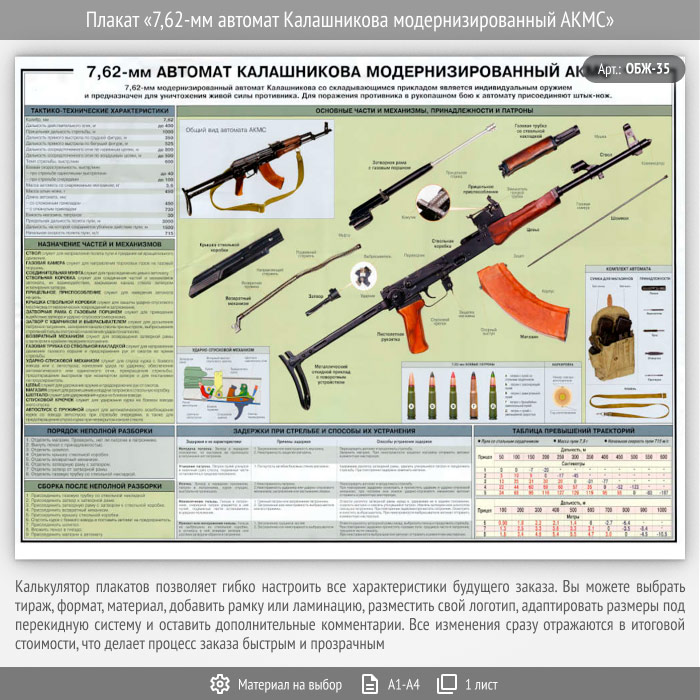 Плакат «7,62-мм автомат Калашникова модернизированный АКМС» (ОБЖ-35, 1 лист) в Улан-Удэ купить