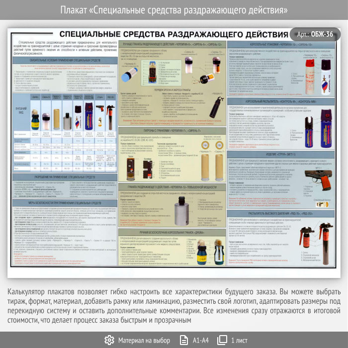 Плакат «Специальные средства раздражающего действия» (ОБЖ-36, 1 лист) в Улан-Удэ купить