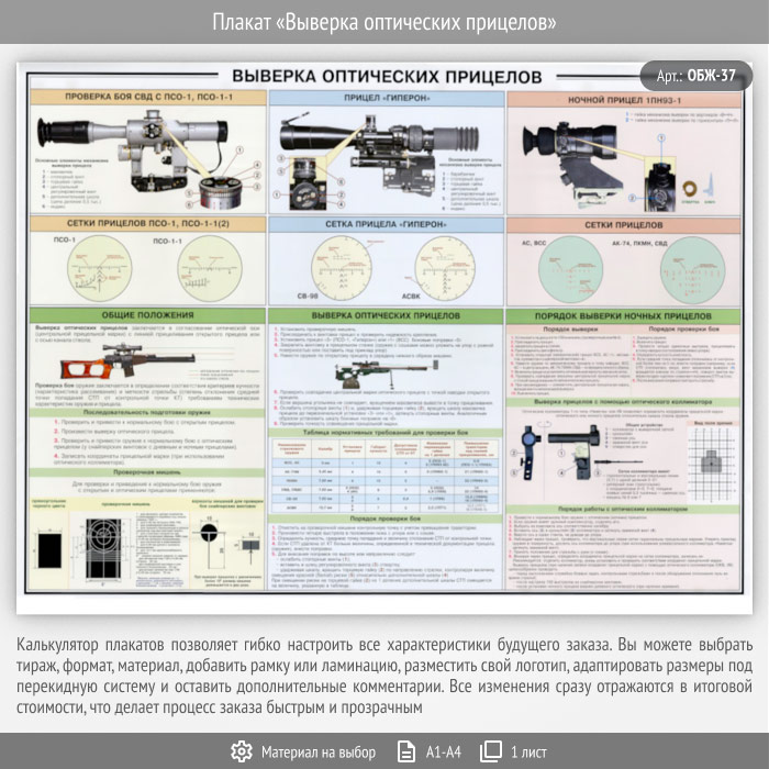 Плакат «Выверка оптических прицелов» (ОБЖ-37, 1 лист) в Улан-Удэ купить